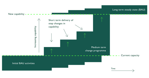My ‘project’ succinctly fit the definition of a programme in its entirety. Once I recognised the key difference between a project and a programme, comparing theory with my reality, the work I was undertaking took on a different shape. Building this department from the ground up shifted beyond creating processes, practices, systems and checklists. I was, after all, increasing the organisation’s effectiveness and facilitating incrementally increasing capability. This meant focusing on outcomes rather than outputs and coordinating multiple interdependent streams of work, some of which were sequential and others in parallel, and teams of people.